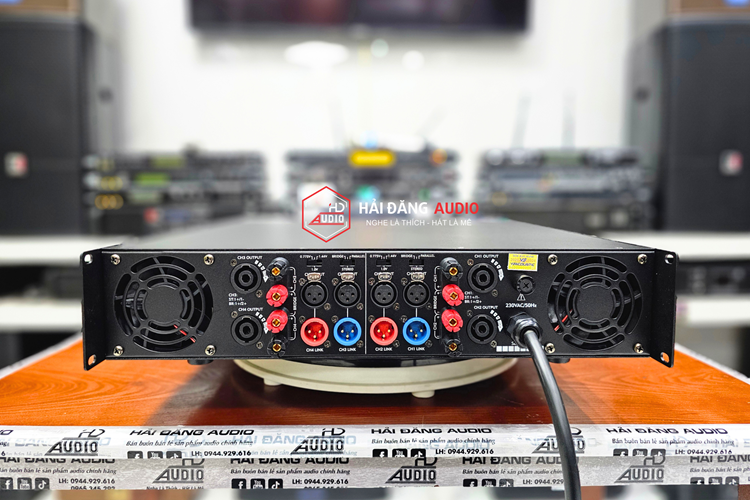 ✅ 4 kênh độc lập – 1300W/kênh: kéo khỏe loa full & loa sub