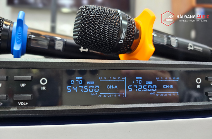📡 Sóng UHF 530–580MHz – 200 kênh (100 kênh mỗi tay mic)
